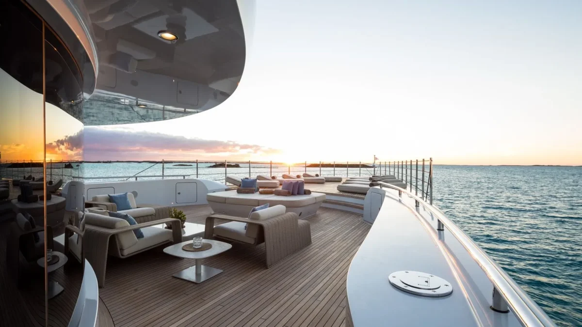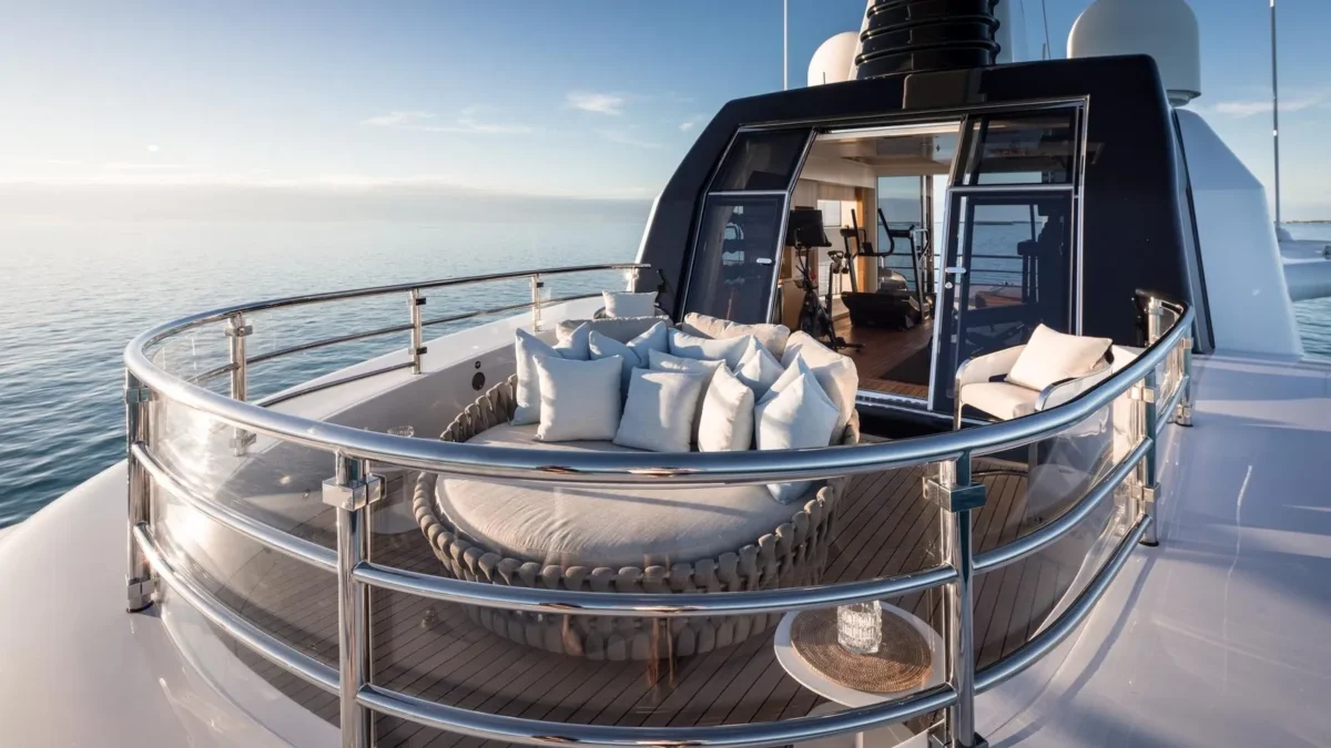 Her tastefully styled interior, curated by the acclaimed London-based design studio Bannenberg & Rowell, blends luxury and comfort seamlessly, creating an inviting atmosphere throughout. An elevator connecting all decks ensures effortless movement, and families will appreciate the dedicated children’s playroom, designed to delight younger guests.