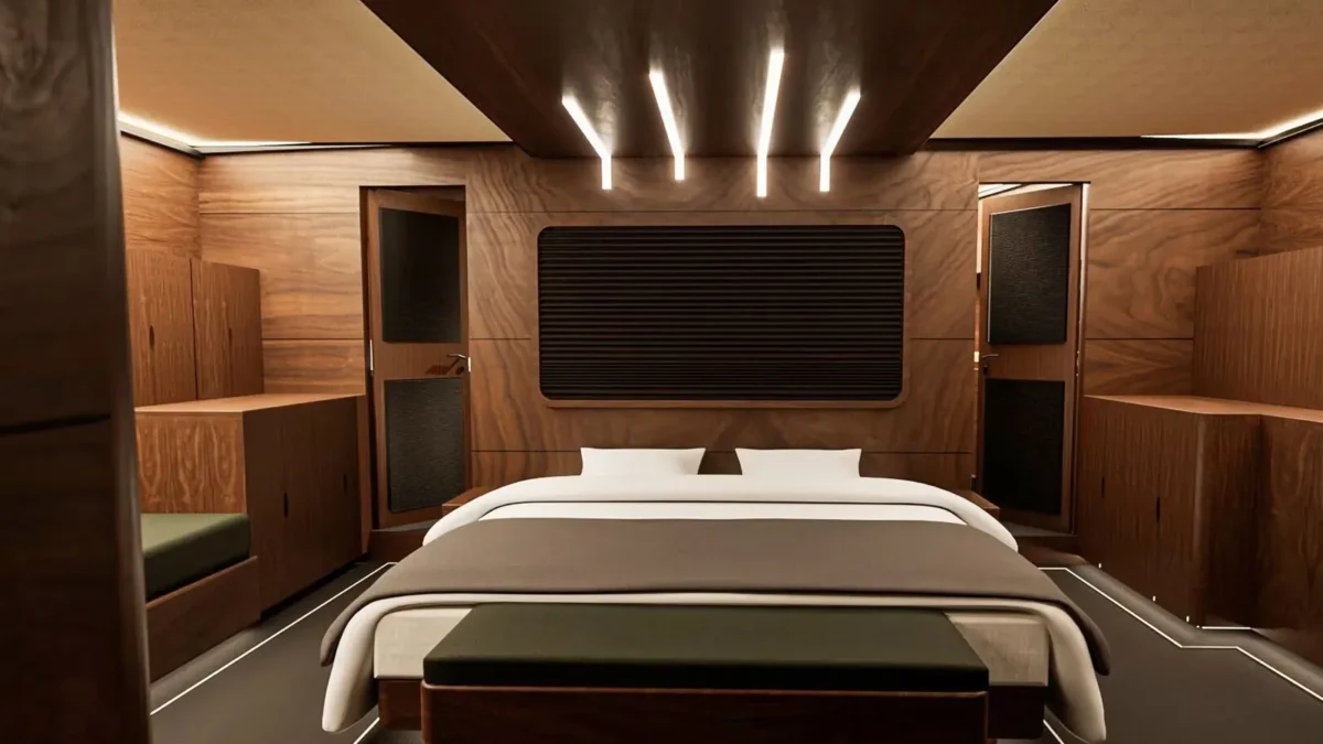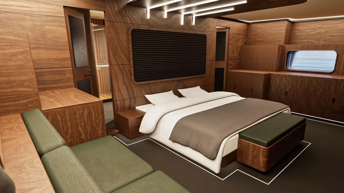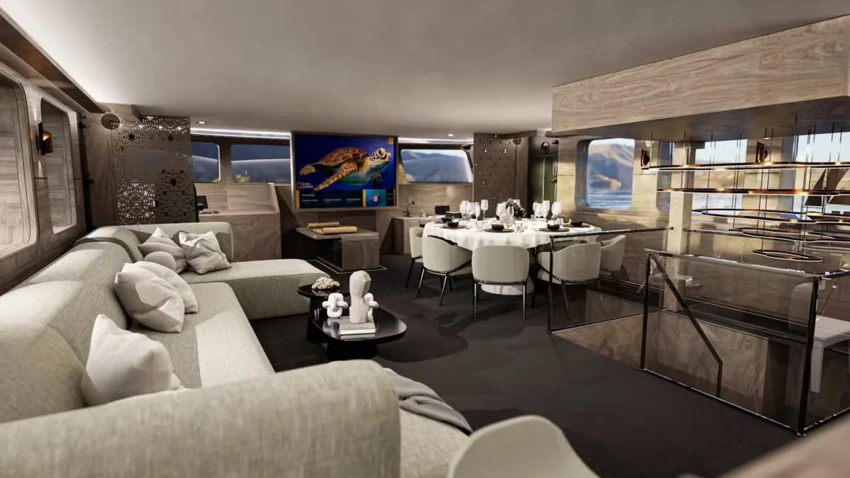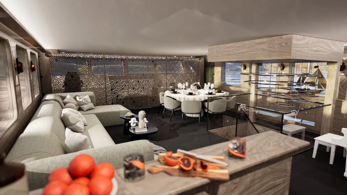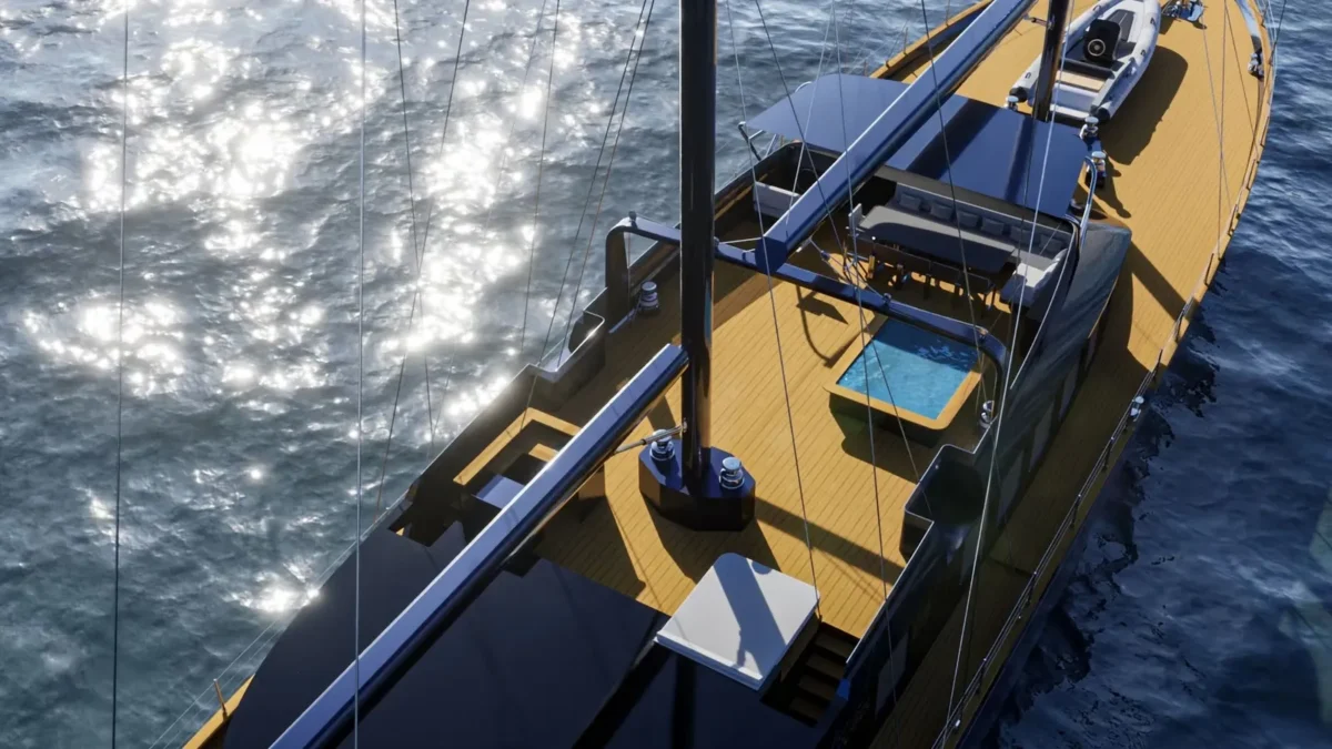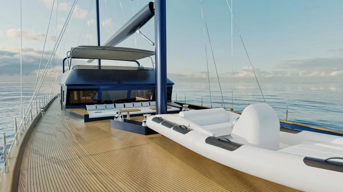The 165’8” (50.5m) sailing yacht OGUZ KHAN was built by Bodrum Oguz Marin and offers accommodation for up to 12 guests in six en-suite cabins. The master suite includes a private Turkish bath and steam room—providing a quiet, spa-like space for relaxation at sea. Her wide decks are arranged for ease and comfort, with a Jacuzzi on deck and open areas for dining or spending time in the sun. The interiors blend soft materials with polished finishes, creating a setting that feels both elegant and welcoming. OGUZ KHAN is well suited to guests of all ages, with spaces designed for quiet retreats as well as shared moments. Whether anchored in a calm bay or sailing along the coast, she offers a calm, spacious platform for enjoying time together on the water in comfort and style.